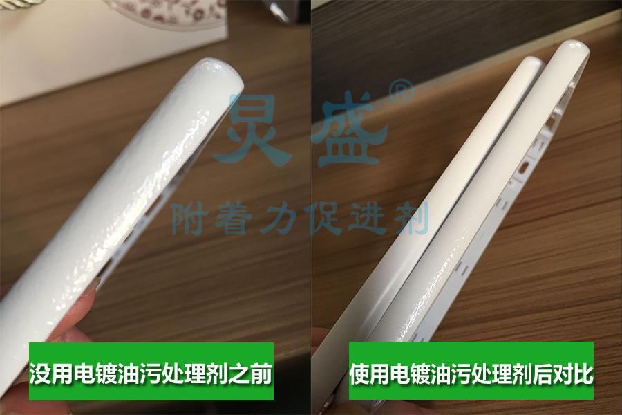 塑胶成型工艺时,素材从模具中脱模出来多少都会残留些脱模剂,另外有些油污是外部造成的,泡白电油、泡某些溶剂、超声波清洗、人工擦拭等,这些方法对于除油有一定的效果,但是是工序繁琐,除油效果不稳定,影响生产效率,但电镀油污处理剂直接挂枪喷就行了。